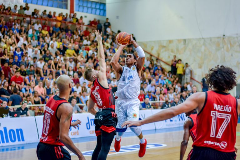 Vira-virou: Ainda no segundo quarto, o Flamengo voltou para a partida e conseguiu terminar o primeiro tempo na frente. Após ver a equipe paulista abrir dez pontos, o rubro-negro encaixou uma sequência de 17 a 3 nos últimos sete minutos da etapa e foi para o vestiário liderando por quatro pontos (34 a 30).