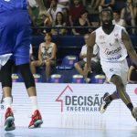 Léo Demétrio erra tentativa para dois pontos. (0/1 - 0.0% - Equipe: 0/3 - 0.0%)